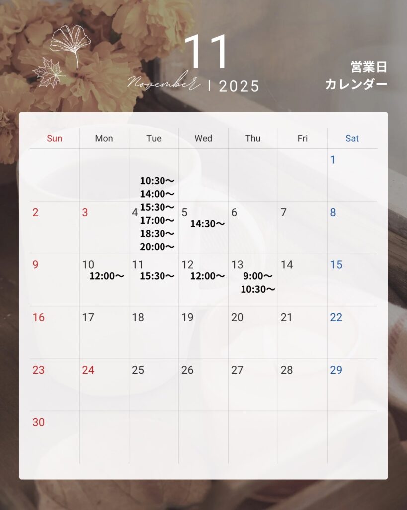 今日は11月前半の体験スケジュールをご案内いたします👏🏻