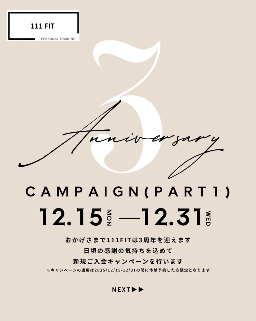 もっともっとたくさんの会員様にとお会いしたい!そんな想いで、111FITは初の3周年キャンペーンを行います☺︎